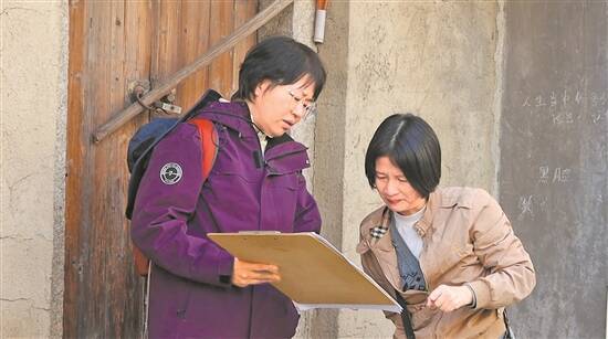 | 蔡凌(左(zuo))在专项调查工作中羊城晚报记者 何文涛 摄 |