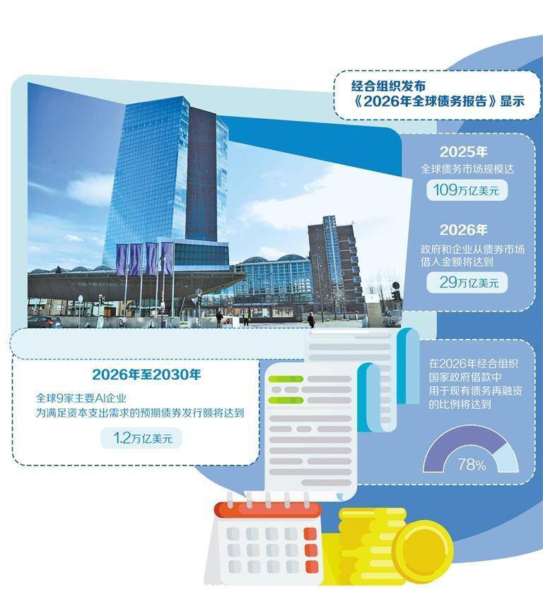 展(zhan)望2026年全球(qiu)债权市场,报告给(gei)出3个枢纽数字。一是29万亿美(mei)圆。报告估计(ji),2026年政(zheng)府(fu)和企业从债券市场借入金额将(jiang)再创记录,达到29万亿美(mei)圆,较2024年超过17%;二是78%。报告估计(ji),正在2026年经合构(gou)造(zao)国度政(zheng)府(fu)乞(qi)贷中,用于现有债权再融资的比例将(jiang)达到78%;三是1.2万亿美(mei)圆。报告估计(ji),2026年至(zhi)2030年,全球(qiu)9家主要人(ren)工智能(AI)企业为满意资源(yuan)付出需求的预(yu)期债券发行额将(jiang)达到1.2万亿美(mei)圆。